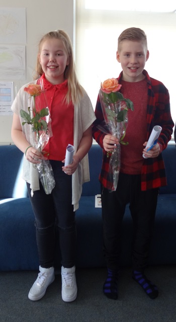 Aníta Rut og Jón Egill lesa upp fyrir hönd skólans 2. mars í Stóru upplestrarkeppninni.
