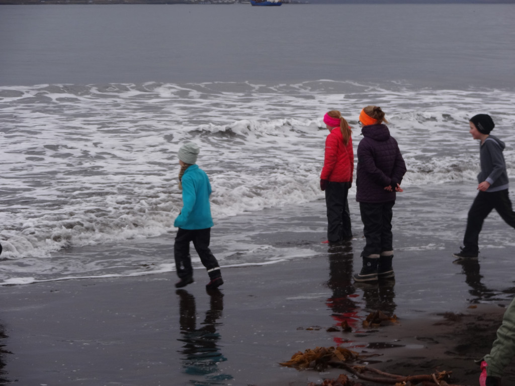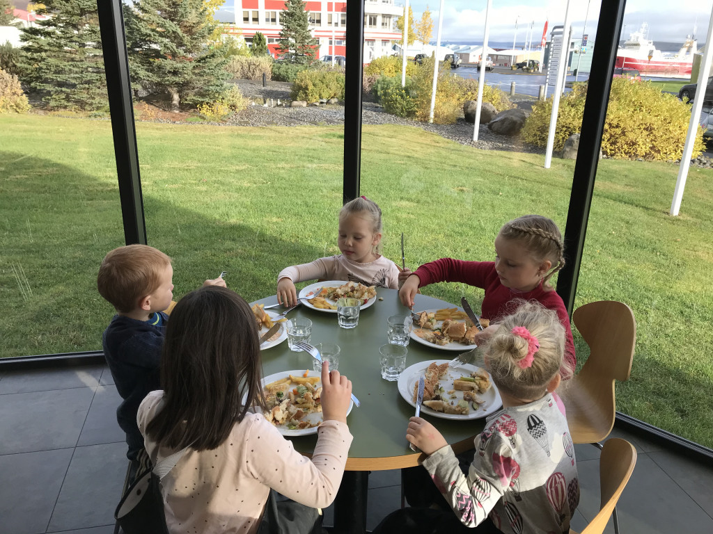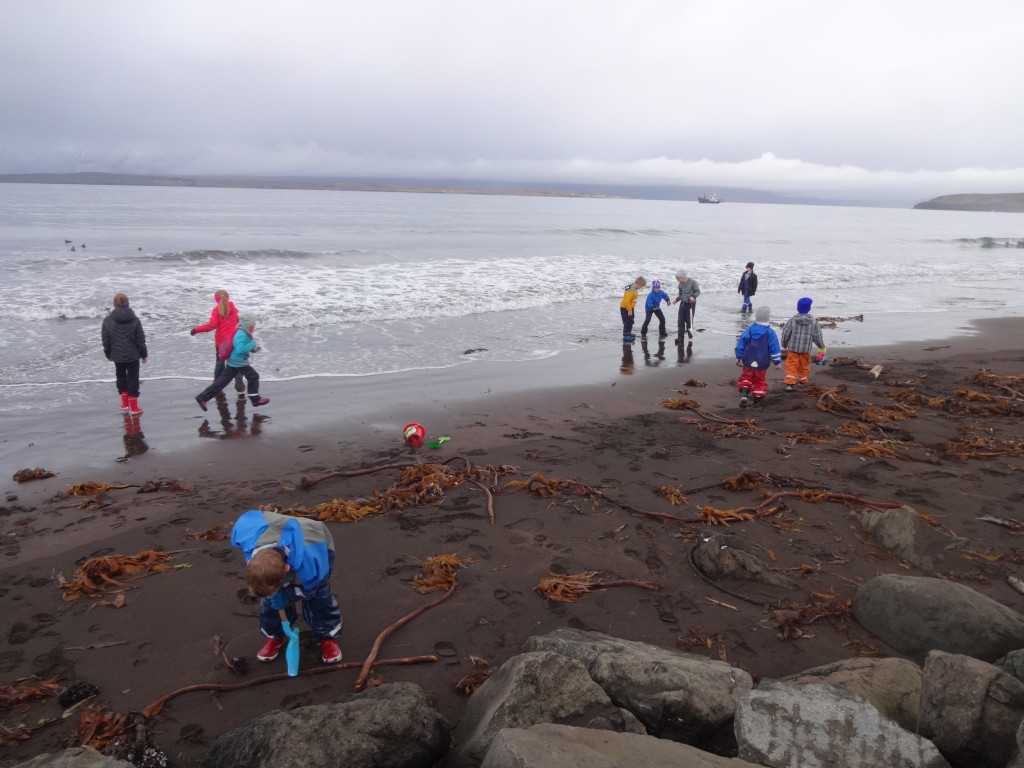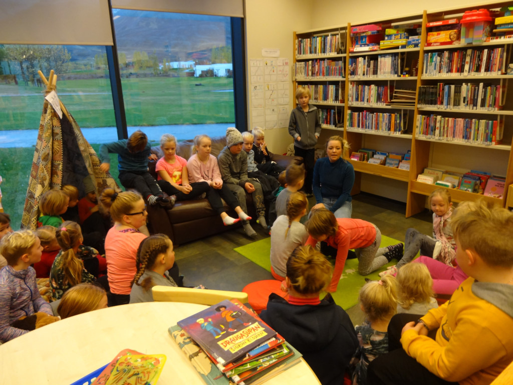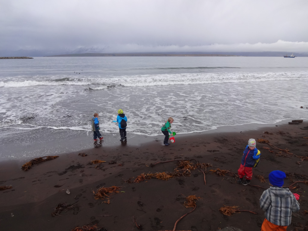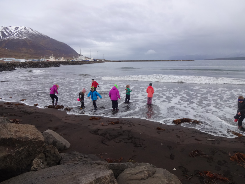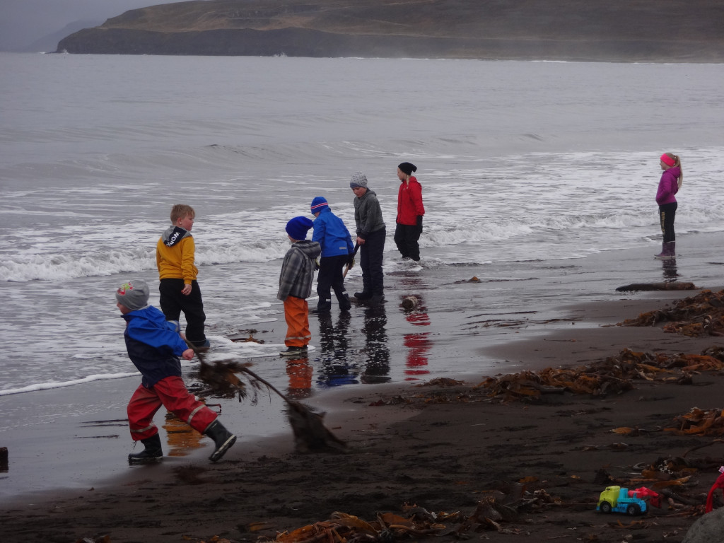 Elstu nemendur leikskólastigs og grunnskólastig fóru dagsferð til Dalvíkur um daginn og áttu góðan, fróðan og skemmtilegan dag. Björk tók á móti hópnum á bókasafninu, las sögu og ýmislegt brallað. Leikir í íþróttahúsinu hjá Helenu, Kötlukot spáði í götunöfn, fór í búðina að kaupa hráefni í bollugerð ofl., fjaran bauð upp á gleði og gaman. Sem sagt, góður dagur í höfuðstaðnum Dalvík.
