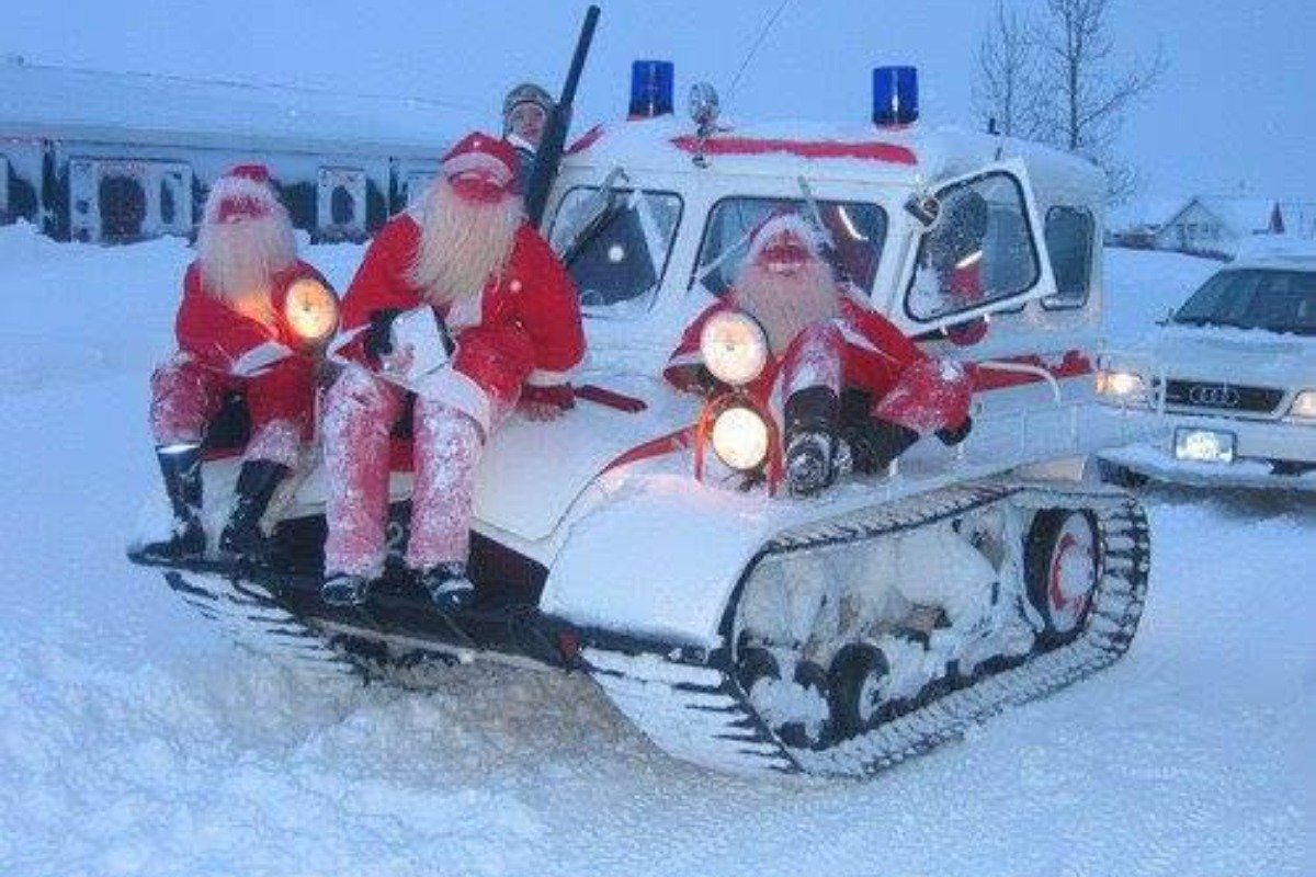 Jólasveinar Dalvíkurskóla bera út jólakort í sveitarfélaginu.