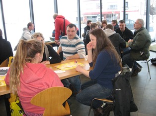 Miðvikudaginn 14. mars hittust um 50 manns í Bergi til að kynnast, spila og spjalla. Þetta voru nemendur á íslenskunámskeiðum Símeyjar ásamt kennurum sínum þeim Guðnýju Ólafs og Unni Hafstað. Þeim til aðstoðar mættu 10 Íslendingar og það var spjallað og spilað í klukkutíma. Þessi stund var einstaklega ánægjuleg og komu fram óskir um að þetta yrði endurtekið síðar. Dalvíkurskóli lánaði okkur spil og við viljum hér með þakka skólanum og öllum þeim sem aðstoðuðu okkur við að gera þetta mögulegt. Hér fyrir neðan má sjá myndir af samkomunni.