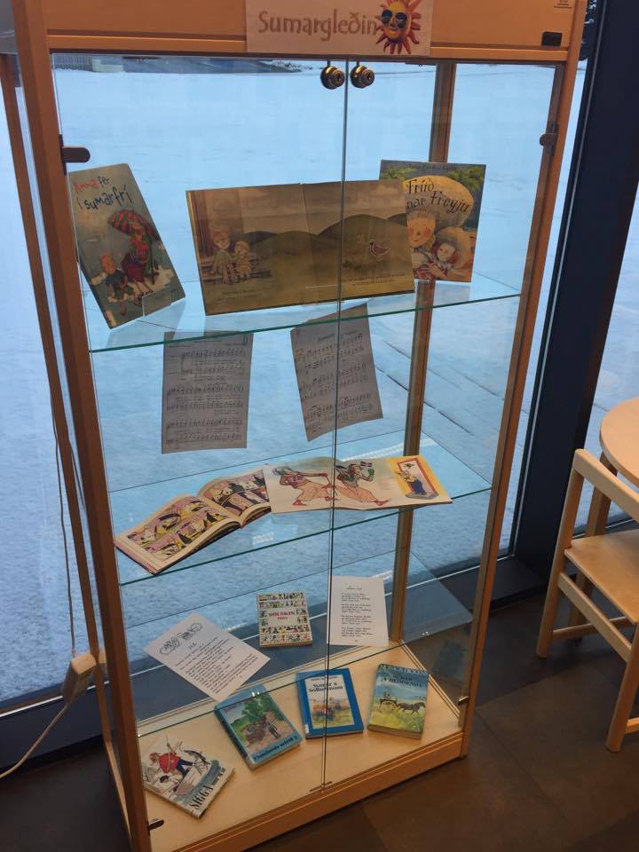 Að lokum viljum við nefna að ný sýning er komin í sýningarskáp bókasafnsins. Eftir vægast sagt undarlegan vetur, hér á norðurhjara veraldar, vorum við komnar í svo mikið sumarskap að það smitaðist yfir í sýningarskápinn. Ef einhver þarf á sól og sumaryl að halda þá mælum við með því að fólk geri sér ferð á bókasafnið og skoði sýningarskápinn. Við erum þess fullvissar að boðskapur af þessu tagi hjálpi til við að létta lundina.