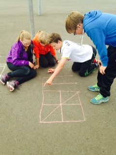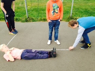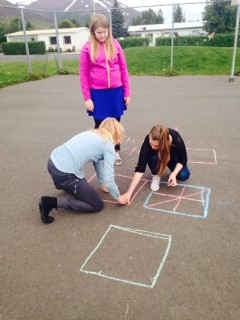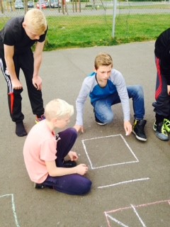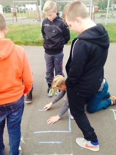 Á miðvikudaginn fórum við út í 8.bekk í stærðfræði. Við lékum okkur með krítar og teiknuðum fyrst ferning með hliðarlengdirnar 40 cm, án þess að vera með nokkur mælitæki með okkur. Ferningarnir voru misstórir en nokkrir nemendur náðu að teikna mjög nákvæma ferninga. Þessir ferningar voru síðan nýttir til að teikna rétthyrning með hliðarlengdirnar 1m x 2m. Þetta verkefni var smá upprifjun á hugtökum í rúmfræði og að njóta þess að vera úti í góða veðrinu. Myndir frá tímanum má sjá hér.
