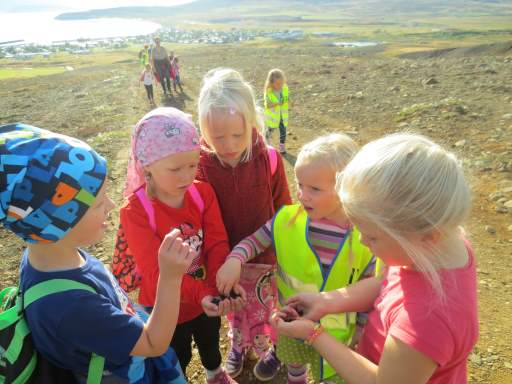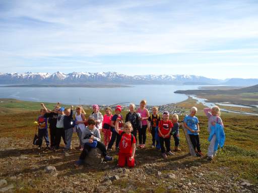 8.-10. bekkur valdi um að ganga upp á Bæjarfjall, Reykjaheiðina eða Vikið.