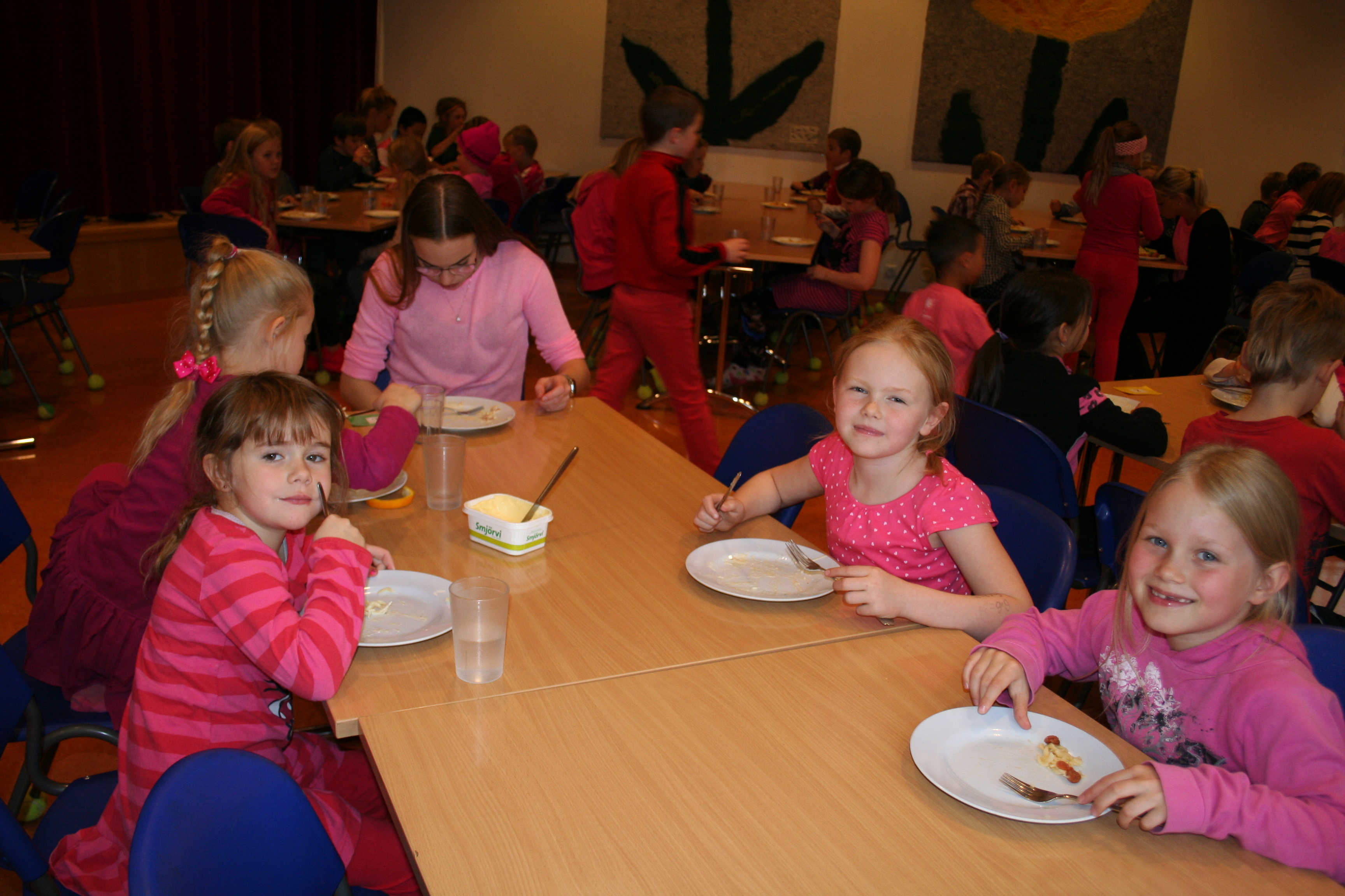Haldið var upp á bleikan dag í skólanum eins og sjá má á myndunum.