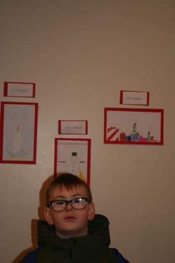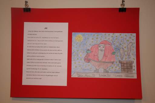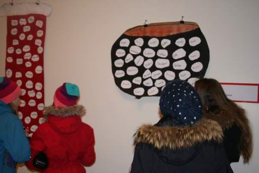 Í Bergi eru jólaverkefni nemenda úr 7. bekk til sýnis. Verkefnin unnu þau í skólanum eftir heimsókn sem þau fóru í Minjasafnið á Akureyri.