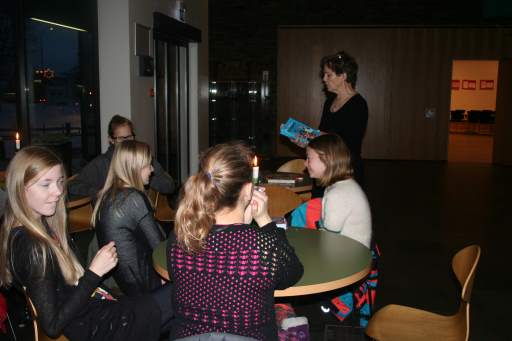 Júlli og Gréta tóku vel á móti þeim í morgun og buðu nemendum og kennurum upp á heitt kakó. Einnig las Laufey upp úr nýjum bókum.