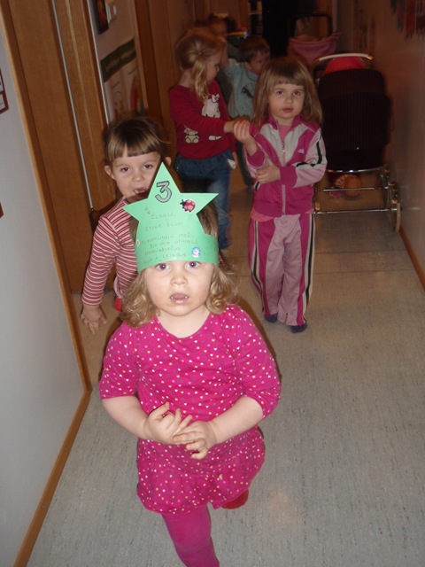 Eyvör Elva varð 3 ára 8 janúar 2012. Í tilefni dagsins tók hún til ávaxti fyrir börnin og bauð þeim auk þess sem leikskólinn gaf henni afmæliskórónu. Hún var fyrst að velja í vali og var borðstjóri í hádegi. Við óskum Eyvöru Elvu og fjölskyldu hennar innilega til hamingju með daginn. Hér má sjá fleiri myndir frá deginum hennar.