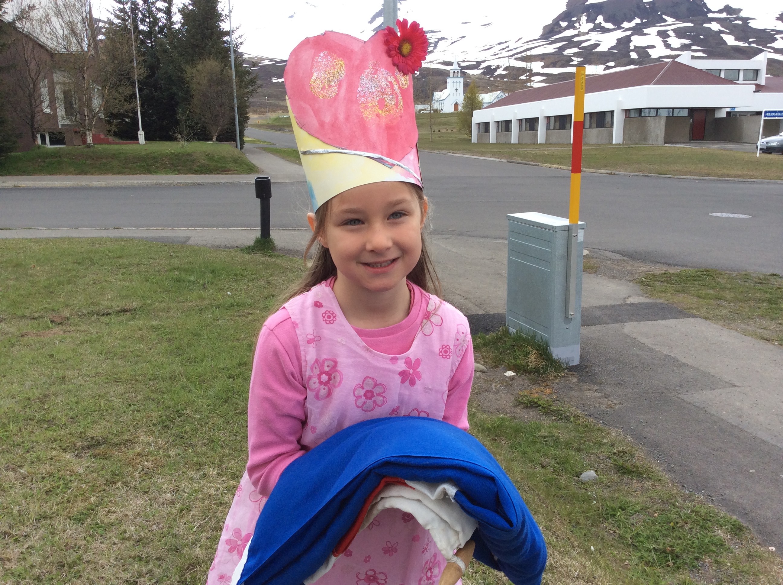 Hún Alexia verður 5 ára þann 27. maí. En þar sem hún verður í fríi á afmælisdaginn héldum við upp á afmælið hennar í dag. Hún bjó sér til fína kórónu, flaggaði íslenska fánanum og bauð upp á ávexti í ávaxtastund. Við vorum með sameiginlegan söngfund í Sólkoti og sungum við heldur betur afmælissönginn fyrir hana. Við óskum Alexiu og fjölskyldu hennar innilega til hamingju með daginn