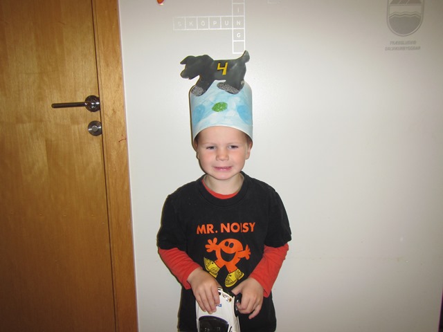 Á sunnudaginn nk. þann 29. september verður hann Arnar Geir 4 ára. Hann bjó sér til glæsilega hundakórónu í tilefni dagsins og bauð börnunum upp á ávexti í ávaxtastundinni ásamt Hafsteini Thor sem einmitt á afmæli sama dag og Steinu stýru
