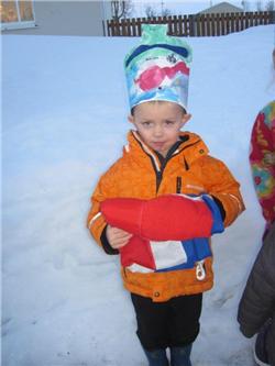 Síðan fór hann út og flaggaði í tilefni þessa merka áfanga ásamt þremur öðrum afmælisstúlkum. Að sjálfsögðu var svo afmælissöngurinn sunginn fyrir hann. Við óskum elsku Birni Emil og fjölskyldu hans innilega til hamingju með afmælið