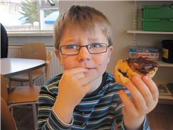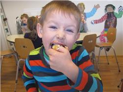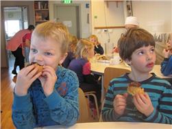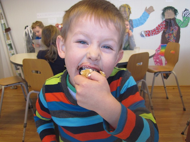 Náðum myndum af nokkrum börnum háma í sig rjómabollurnar. Flestum fannst þær mjöööög góðar! :)