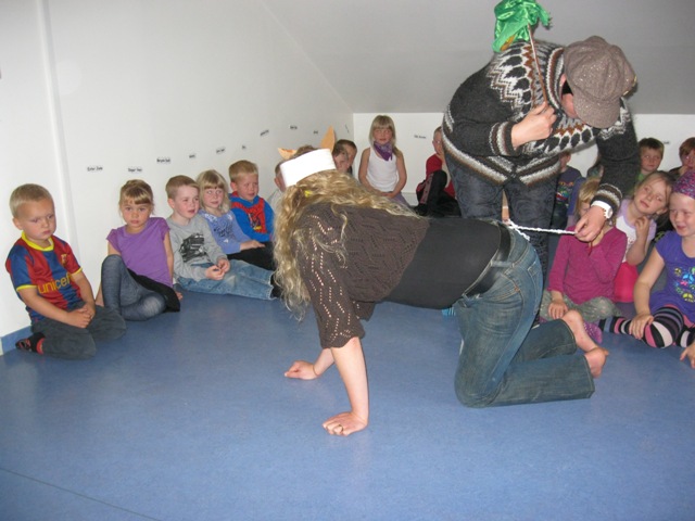 Í dag settu kennararnir upp leikrit fyrir börnin. Það var hið gamla og sígilda ævintýri um strákinn og Búkollu sem varð fyrir valinu. Var þetta hluti af þemanu um gamla tímann sem við erum að fara að vinna með. Bæði börn og kennarar skemmtu sér konunglega eins og sjá má á myndunum.
