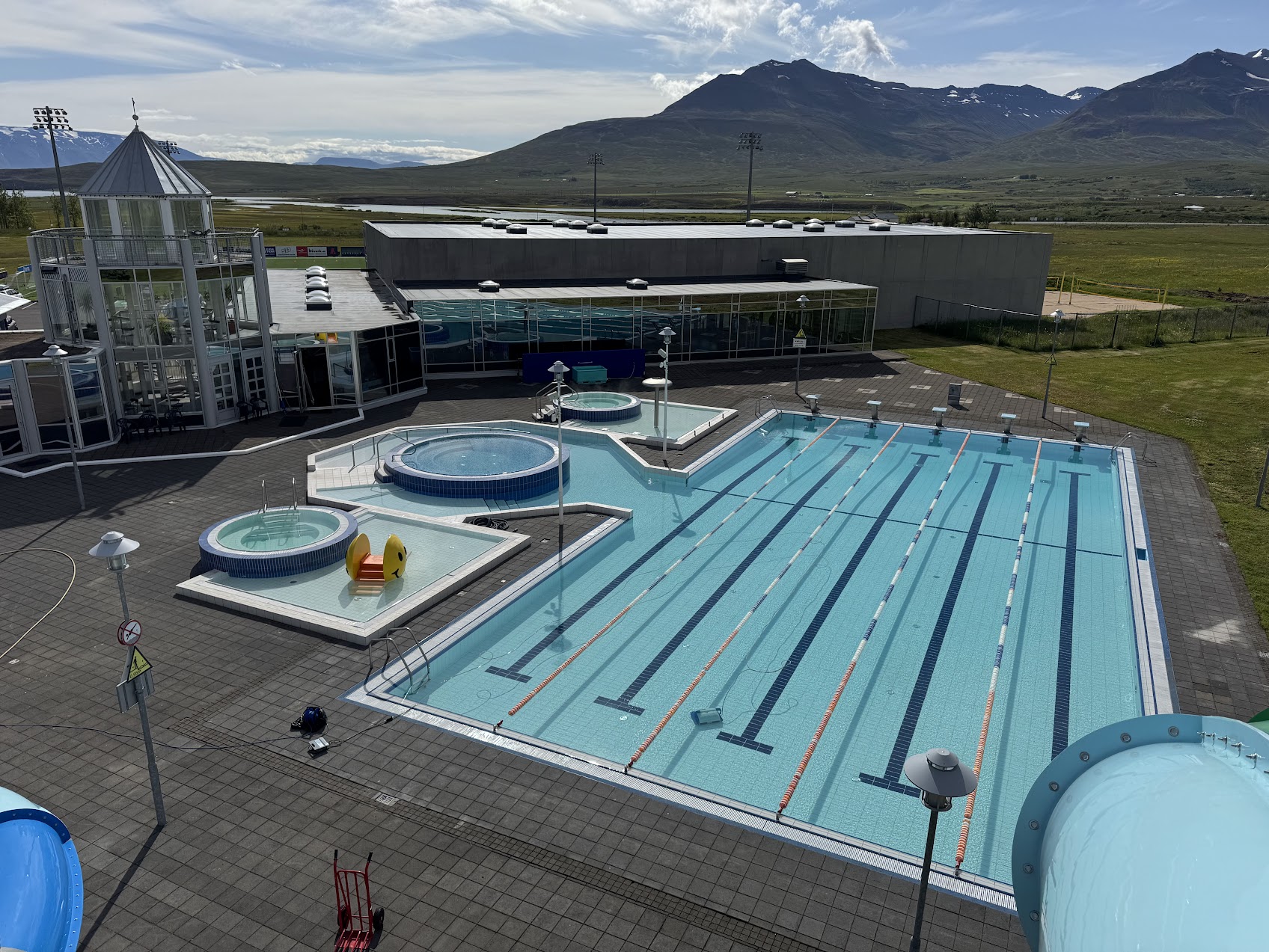 Sundlaugin á Dalvík var loksins opnuð aftur eftir miklar endurbætur. En það er markmiðið að þeim sé lokið núna til lengri tíma.