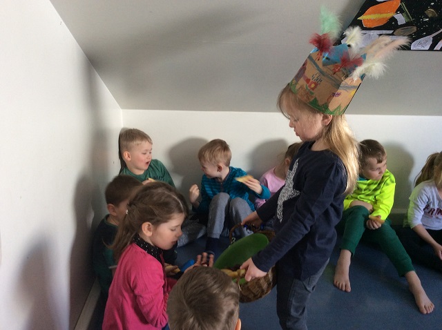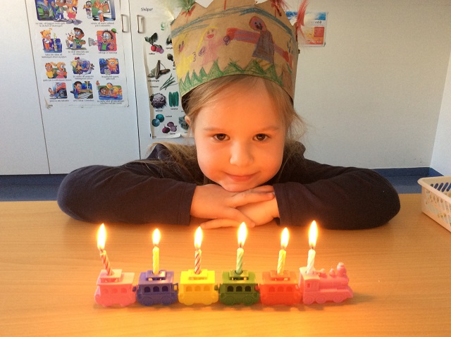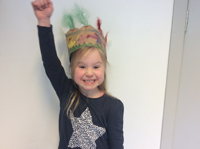 Í dag, 30. mars, er Eyrún Hekla 6 ára. Hún bjó sér til glæsilega kórónu sem hún bar í tilefni dagsins. Við sungum fyrir hana afmælissönginn og hún bauð svo upp á ávexti í ávaxtastundinni. Hún flaggaði svo íslenska fánanum. Við óskum Eyrúnu Heklu og fjölskyldu hennar innilega til hamingju með daginn.