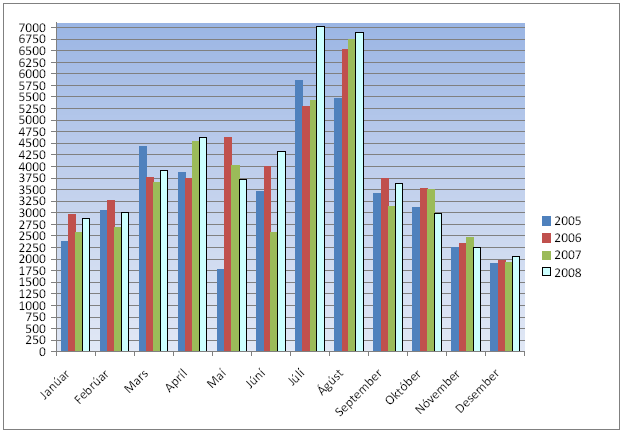 Hér fyrir neðan er mynd með aðsóknartölum fyrir árin 2005-2008