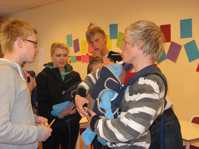 fylgir magapoki, bleiur, peli og fatnaður. Nemandanum er síðan ætlað að hugsa um "barnið" í tvo sólarhringa eins og um raunverulegt barn sé að ræða. Almennt eru "börnin" stillt þannig að nemendur frá reynslu af öllum stigum. "Barnið" grætur, ropar, hjalar og það þarf að skipta á því. Á föstudagsmorgun er umönnunartímanum lokið og "börnunum" komið til skila í hendur félagsmálastjóra. Á þriðjudagsmorgun er prentuð út skýrsla af umhugsun hvers barns fyrir sig. Á skýrslunni sést síðan nákvæmlega hvernig hefur verið hugsað um "barnið" yfir helgina.