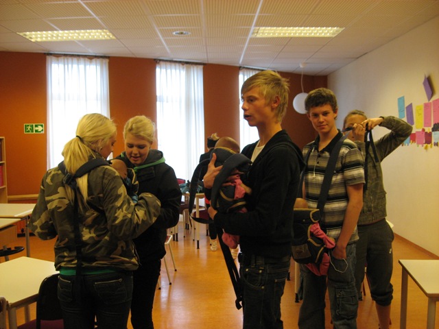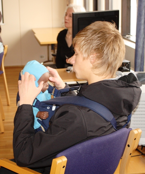Nemendur 10. bekkjar í grunnskóla Dalvíkurbyggðar fengu í hendur dúkkur í gær sem þeir eiga að annast frá því kl. 20, þriðjudagskvöldið 2. maí fram til kl. 8:00 á næsta föstudagsmorgun 8. maí. Þannig kynnast þeir þeirri ábyrgð sem því fylgir að annast ungabarn. Nemendurnir þurfa því að hugsa um "börnin" í tvo sólarhringa og taka þau með sér hvert sem þau fara. Í morgun komu þau til dæmis í Ráðhúsið og fengu kynningu á stjórnkerfinu, stjórnsýslunni og fleira sem að því snýr hjá Svanfríði Jónasdóttur bæjarstjóra og að sjálfsögðu voru börnin með í för og létu þau sér það í léttu rúmi liggja þó að foreldrarnir væru uppteknir við lærdóminn.