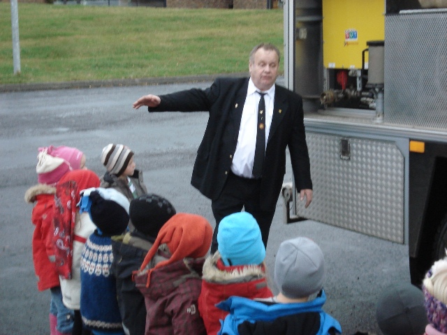 Í gær fengu elstu börnin heimsókn frá slökkviliðinu