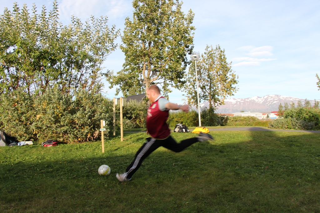 Kennarar við Dalvíkurskóla spreyttu sig á vellinum í síðustu viku og voru ánægðir með hvernig tiltókst.