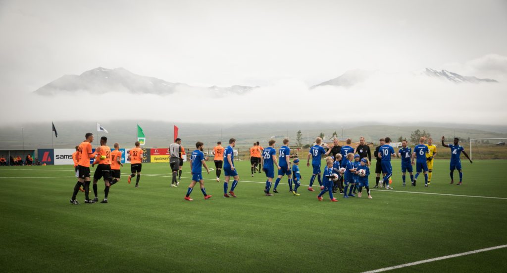 Opinber vígsla vallarins verður auglýst síðar en þangað til er um að gera að fjölmenna á þá leiki félagsins sem framundan eru.