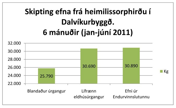 Samkvæmt upplýsingum frá Gámaþjónustunni hafa íbúar Dalvíkurbyggðar náð mjög góðum árangri við flokkun heimilisúrgangs. Hér fyrir neðna má sjá tvær myndi sem sýna þennan árangur glöggt.
