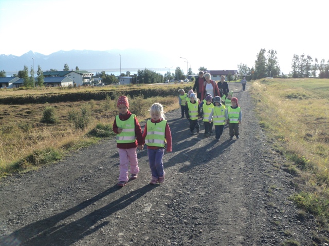 Í gær gengu elstu börnin með 1. bekk að Seltóftum í brakandi  blíðu. Allir skemmtu sér ljómandi vel og nutu sín í veðurblíðunni. Myndir frá deginum eru komnar í myndasafnið sem er undir "hópar".