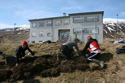 Námskeiðshópurinn frá Hólaskóla sem dvaldi á Húsabakka í vikunni var ekki skipaður neinum aukvisum. Hér voru á ferðinni 20 ofvirkjar víðs vegar að af landinu, flestir í fjarnámi í landvörslu á ferðamálabraut Hólaskóla ásamt því að vera í fullri vinnu heima hjá sér. Var hópnum skipt upp í smærri hópa sem fengu að spreyta sig á ýmsum verkefnum s.s. að smíða brýr, leggja stíga og ræsa fram bleytu. Máttu kennararnir hafa sig alla við að finna ný og ný verkefni en þegar þeim sleppti dunduðu menn sér við að rífa upp gamlar jarðgrónar girðingar og þar sem enginn var naglbíturinn var þeim rúllað upp í heilu lagi með neti, gaddavír, og staurum. Náttúrusetrið á Húsabakka getur ekki annað en þekkað þessu góða fólki hjálpina við að bæta og fegra aðgengið að Friðlandi Svarfdæla.