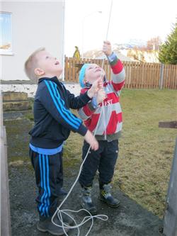 Guðmundur Árni varð 4 ára 10. nóvember. Af því tilefni bjó hann sér til glæsilega kórónu, flaggaði íslenska fánanum ásamt hinu afmælisbarninu, Hannesi Inga, var þjónn dagsins og svo sungu börnin fyrir hann afmælissönginn. Við óskum Guðmundi Árna og fjölskyldu hans innilega til hamingju með daginn.