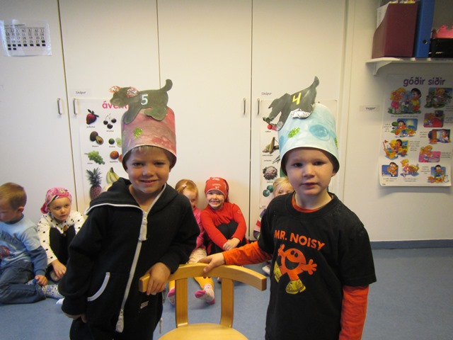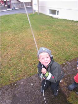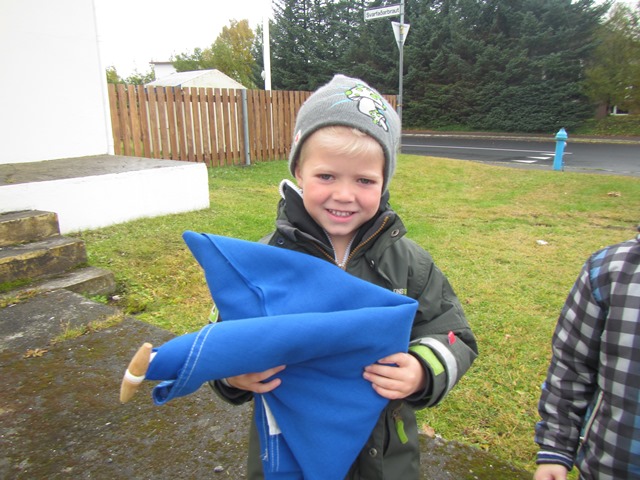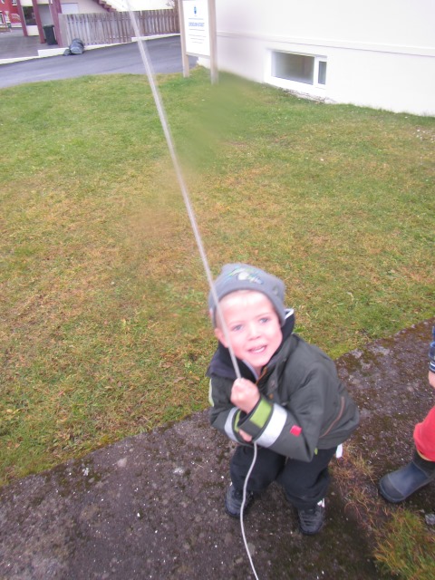 Afmælissöngurinn var svo að sjálfsögðu sunginn fyrir hann. Í tilefni þessa merka dags fór hann út og flaggaði íslenska fánanum. Ekki skemmdi það svo daginn að í dag var einnig dótadagur í leikskólanum