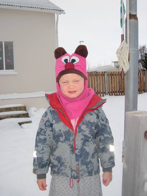 Á sunnudaginn verður hún Hildur Inga 4 ára og í dag hélt hún upp á afmælið sitt í leikskólanum. Hún bjó sér til fallega kórónu, flaggaði íslenska fánanum í tilefni dagsins. Síðan bauð hún upp á ávextina í ávaxtastundinni og við sungum afmælissönginn fyrir hana. Við óskum Hildi Ingu og fjölskyldu hennar innilega til hamingju með daginn