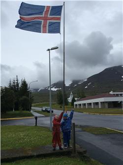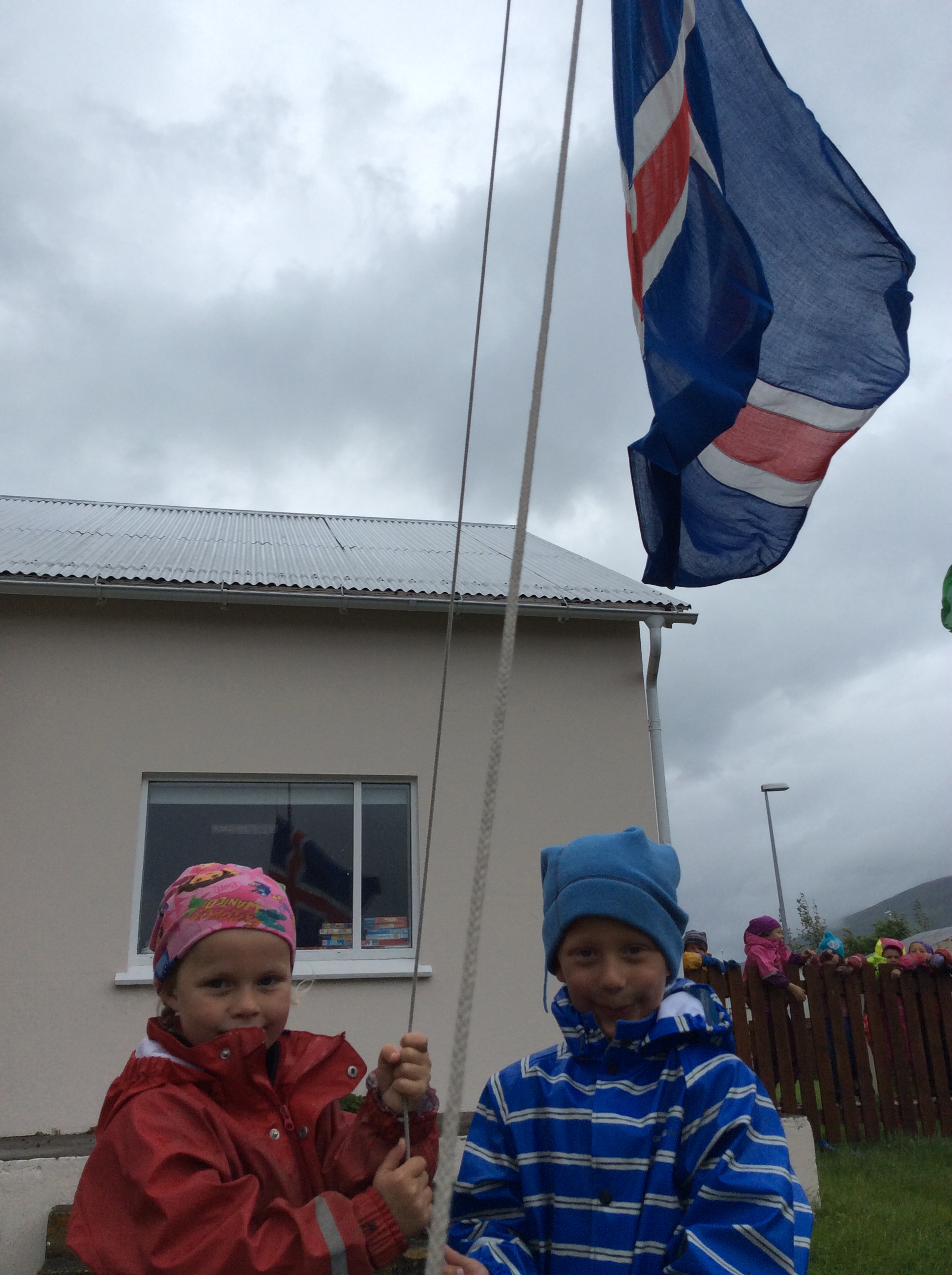Á morgun 5. júlí verður Kamil 5 ára. Við héldum upp á daginn hans í dag, Kamil bjó sér til fallega kórónu og síðan bauð hann upp á ávexti á söngfundi. Við sungum afmælissönginn fyrir hann og svo fór hann út og flaggaði íslenska fánanum með Steinunni Sóllilju sem á afmæli í dag. Til hamingju með afmælið þitt elsku Kamil og fjölskylda