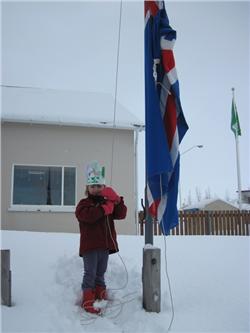 Á fimmtudaginn, 21. mars, varð Karita Kristín 5 ára. Hún var búin að gera sér glæsilega kórónu sem hún hafði á höfðinu á afmælisdaginn. Börnin sungu fyrir hana afmælissönginn og hún flaggaði íslenska fánanum. Við óskum Karitu Kristínu og fjölskyldu hennar innilega til hamingju með daginn.