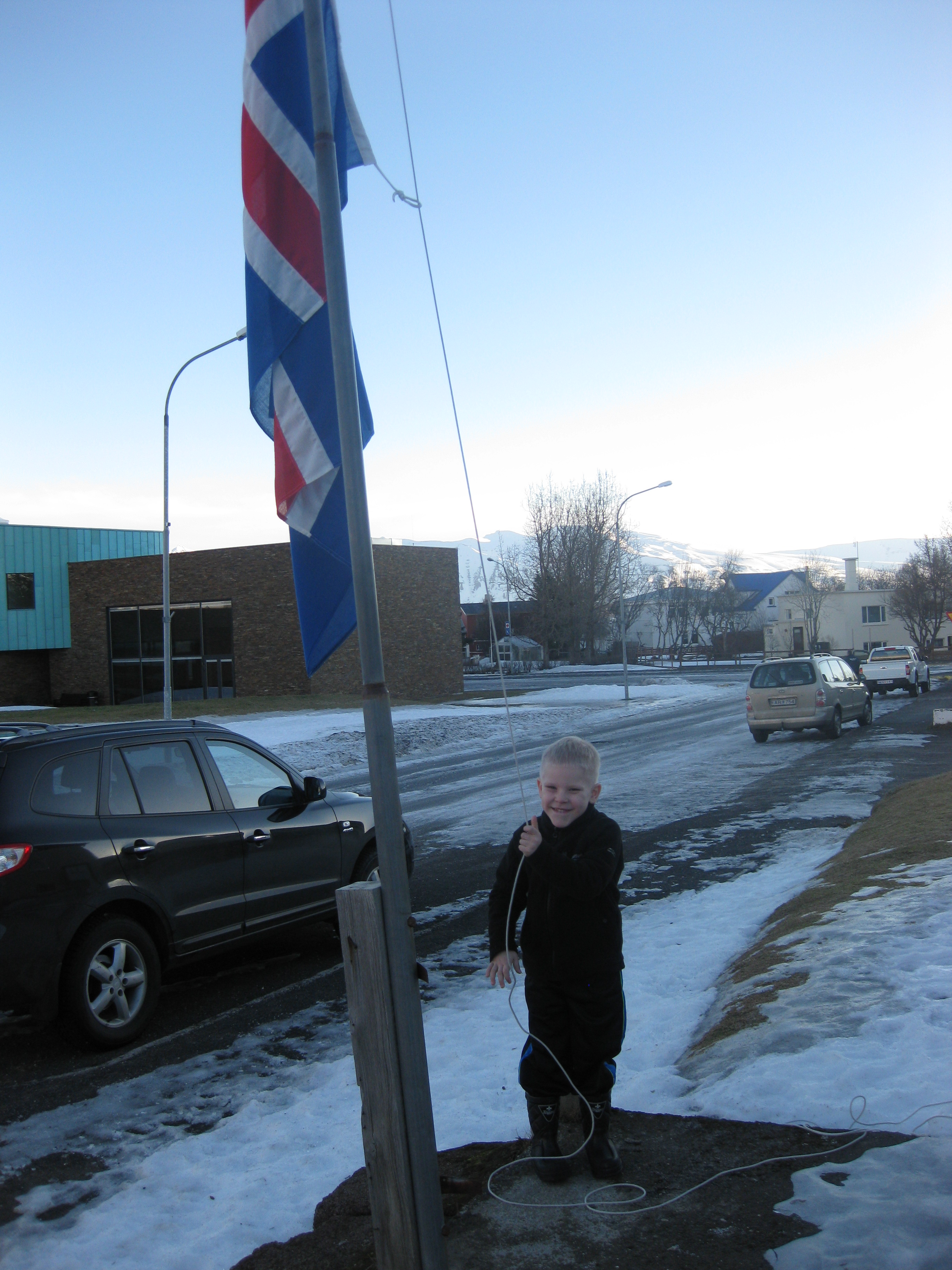 Í gær sunnudaginn 13. febrúar varð hann Konráð Ari 5 ára. Af því tilefni bjó hann sér til myndarlega afmæliskórónu í dag, bauð börnunum upp á ávexti í ávaxtastund og flaggaði í tilefni dagsins. Við óskum Konna innilega til hamingju með afmælið!