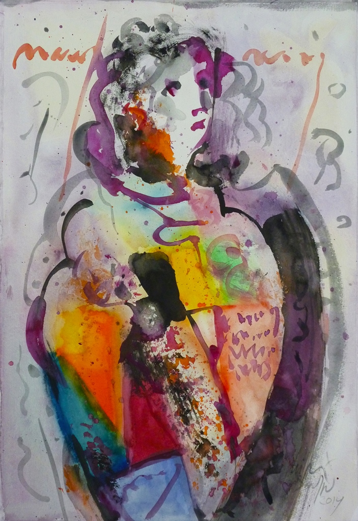 Vatnslitamyndirnar eru til sýnis í sal menningarhússins. Þar sýnir hann 17 verk sem hann skiptir í tvær setteringar; Söngvarar á sviði og Aðrir þátttakendur. Þemað er svo sannarlega viðeigandi fyrir salinn í Bergi en hann er einstaklega heppilegur fyrir tónlistarflutning. Á sviðinu má því meðal annars sjá Kórstjórann, Sópransöngkonuna og Stórsöngvarann en í salnum má til dæmis sjá Ljóðskáldið, Menningarfulltrúann og Gagnrýnandann.