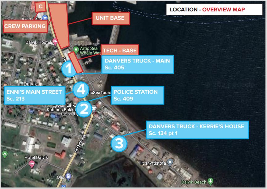 Í nótt verður reynt að klára þær upptökur sem eftir eru en það kallar á lokanir í Böggvisbraut, Hafnarbraut og við Flæðaveg.