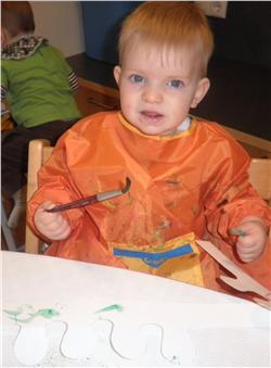 Í gær, 24. október, varð Matthías Helgi 1 árs. Við héldum upp á afmælið hans í dag með því að hann fékk kórónu sem hann var búinn að mála á, fór út og flaggaði íslenska fánanum, bauð upp á ávextina í ávaxtastundinni og svo sungum við fyrir hann afmælissönginn. Við óskum Matthíasi Helga og fjölskyldu hans innilega til hamingju með þennan áfanga.