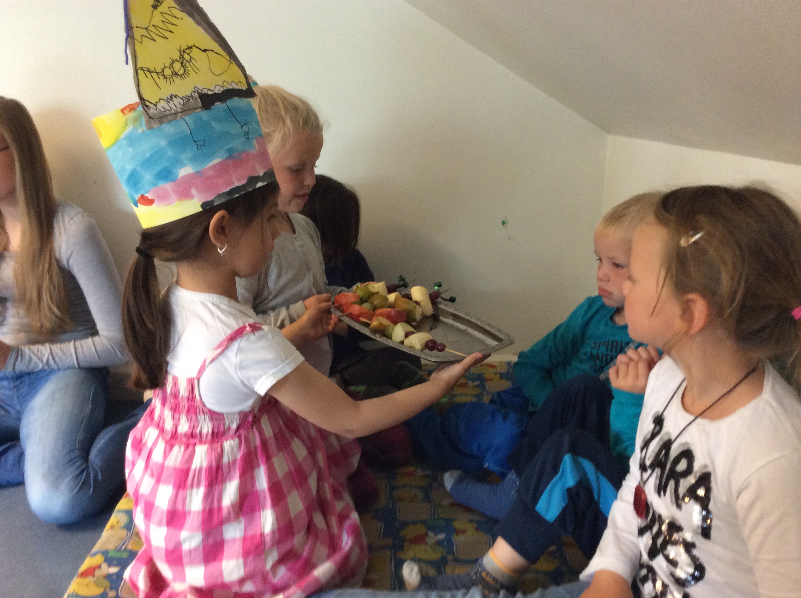 Hún bjó sér til glæsilega kórónu, bauð upp á ávexti á söngfundi