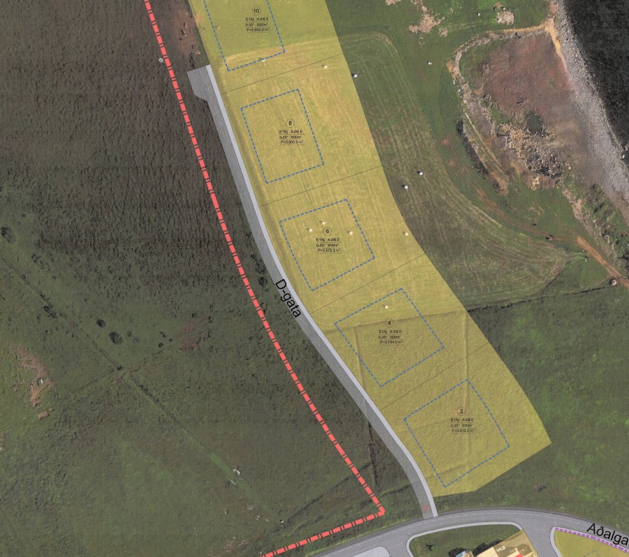 D-gata, norðan við Aðalgötu, þar sem gert er ráð fyrir íbúðabyggð.