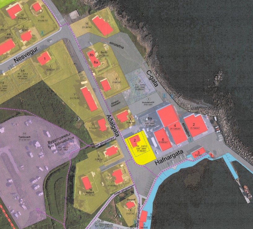 C-gata, einstefnugata frá Hafnargötu að Aðalgötu, þar sem gert er ráð fyrir verbúðum og aðkomu að skolpdælustöð.