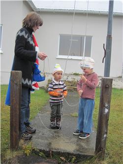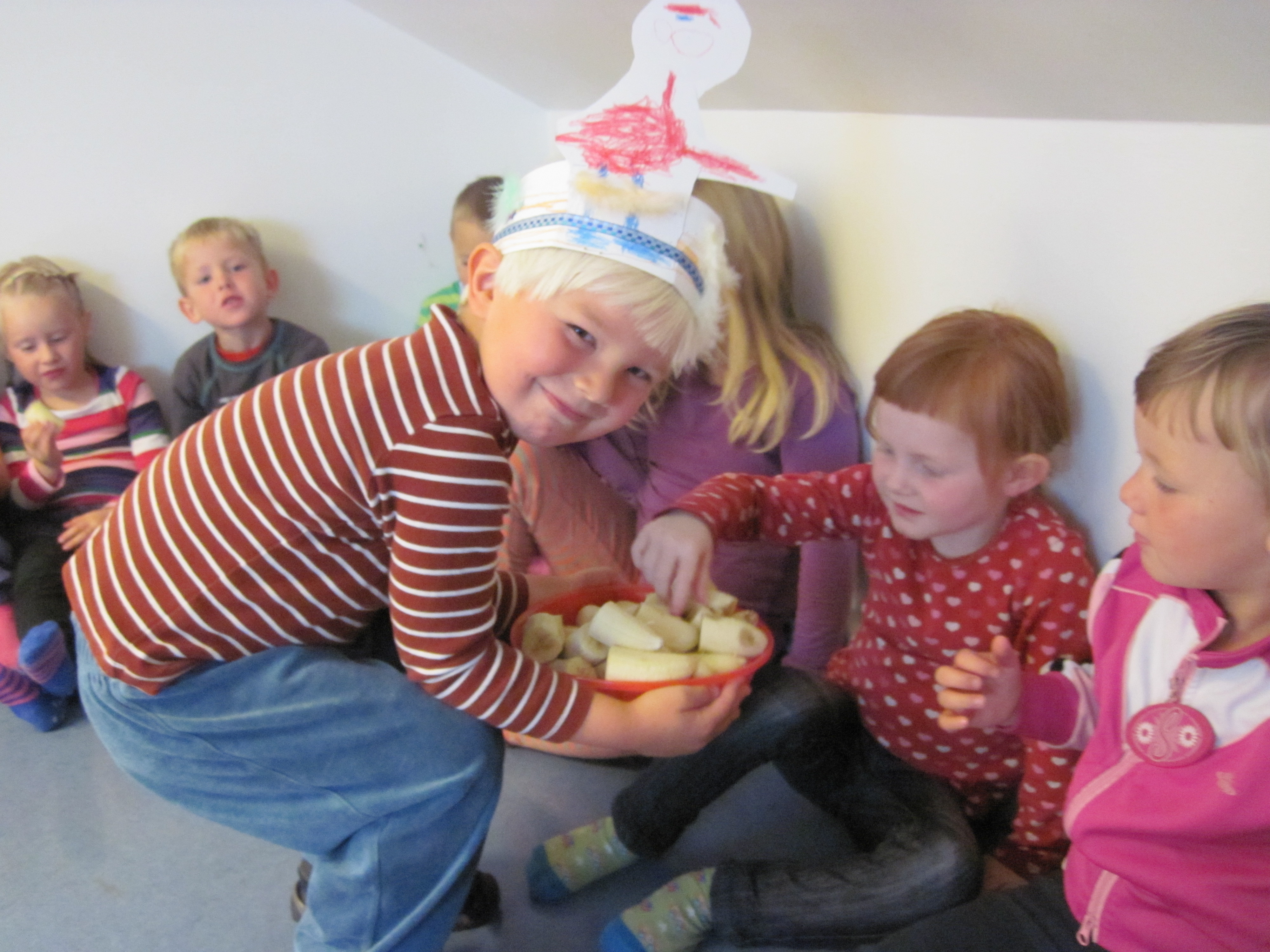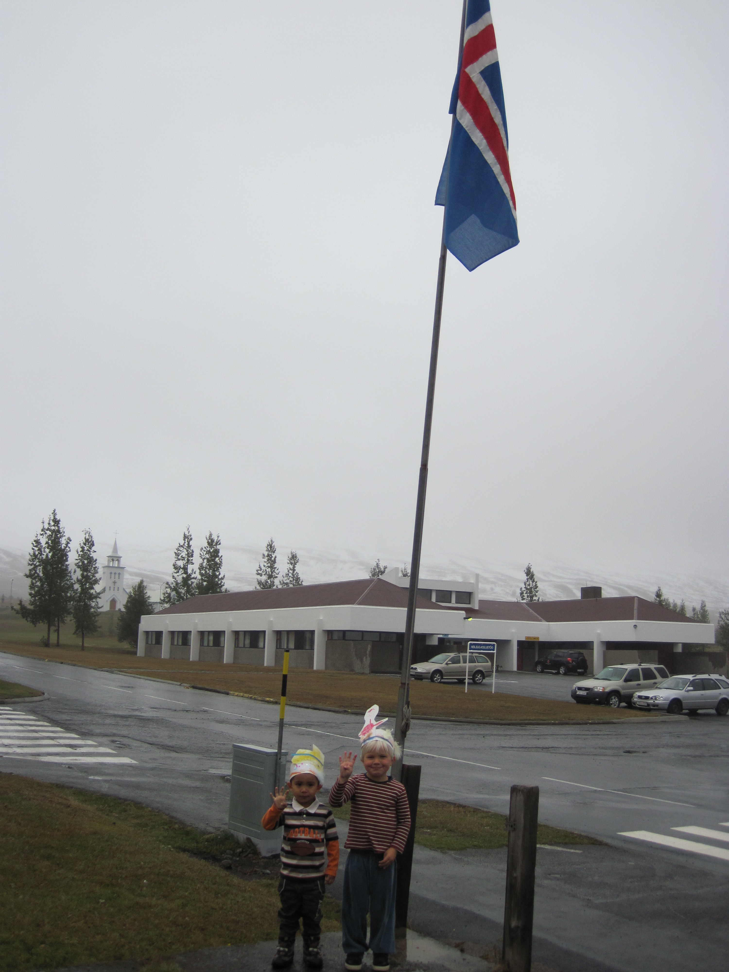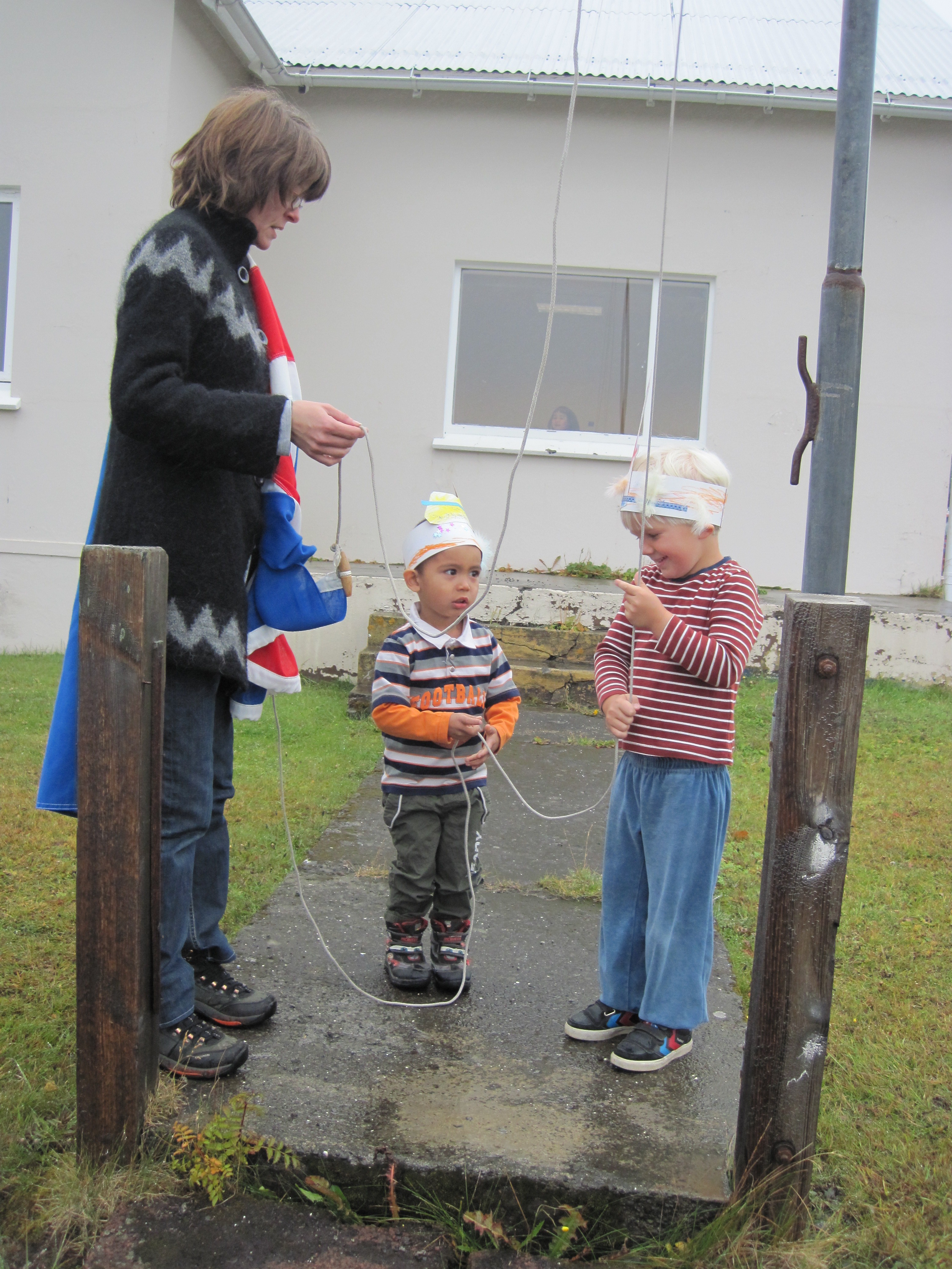 Á sunnudaginn, 16. september, verður Óskar Valdimar 4 ára. Af því tilefni bjó hann sér til glæsilega Spiderman kórónu og bauð upp á ávexti ásamt Jens Adrian sem verður 4 ára á morgun. Þeir flögguðu líka íslenska fánanum saman og svo var afmælissöngurinn sunginn. Við óskum Óskari Valdimar og fjölskyldu hans innilega til hamingju með afmælið.