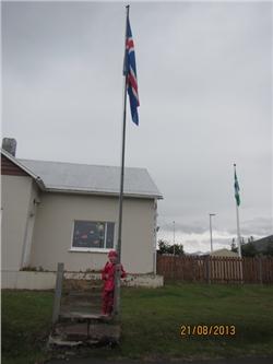 Fyrir hádegi fór hún í skemmtilega gönguferð ásamt krökkunum á sinni deild þar sem þau gengu niðrað sjó og gáfu öndunum brauð, svo enduðu þau ferðina á að sulla og vaða að vild í láginni sem vakti mikla lukku