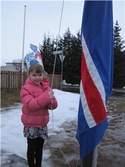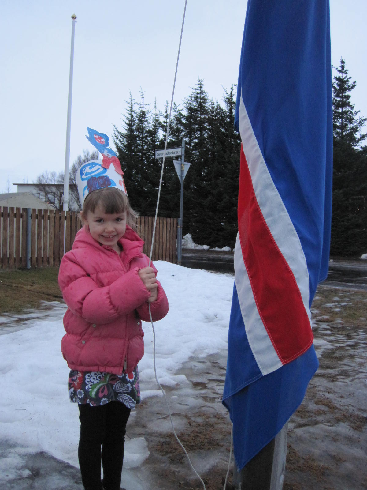 Í dag á Rakel Sara 6 ára afmæli og hélt hún upp á það á hefðbundinn hátt í leikskólanum. Hún bjó sér til fína bangsakórónu, bauð öllum upp á ávexti og síðan sungum við fyrir hana afmælissönginn. Þá dró hún íslenska fánann að húni í tilefni dagsins.  Við óskum Rakel Söru og fjölskyldu hennar innilega til hamingju með daginn