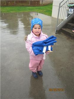 Fyrir hádegi skemmti Roxana sér í frjálsum leik inni með krökkunum og fór síðan út að sulla í rigningunni og pollunum