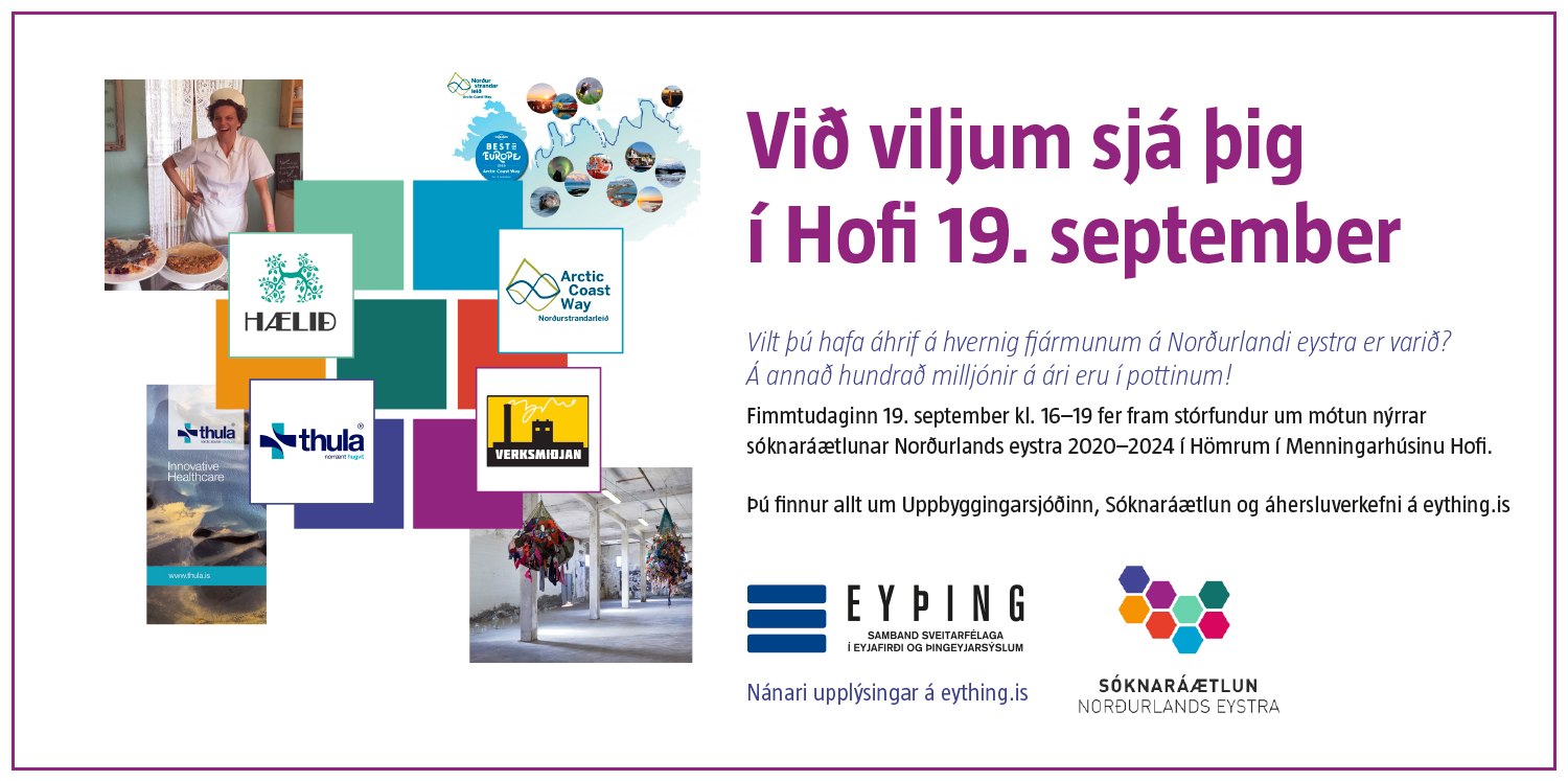 Afar mikilvægt er að heyra raddir sem flestra og hvetur Eyþing því atvinnulífið, unga fólkið, fólk í nýsköpun og mennta- og menningargeiranum til að mæta og koma sínum hugmyndum