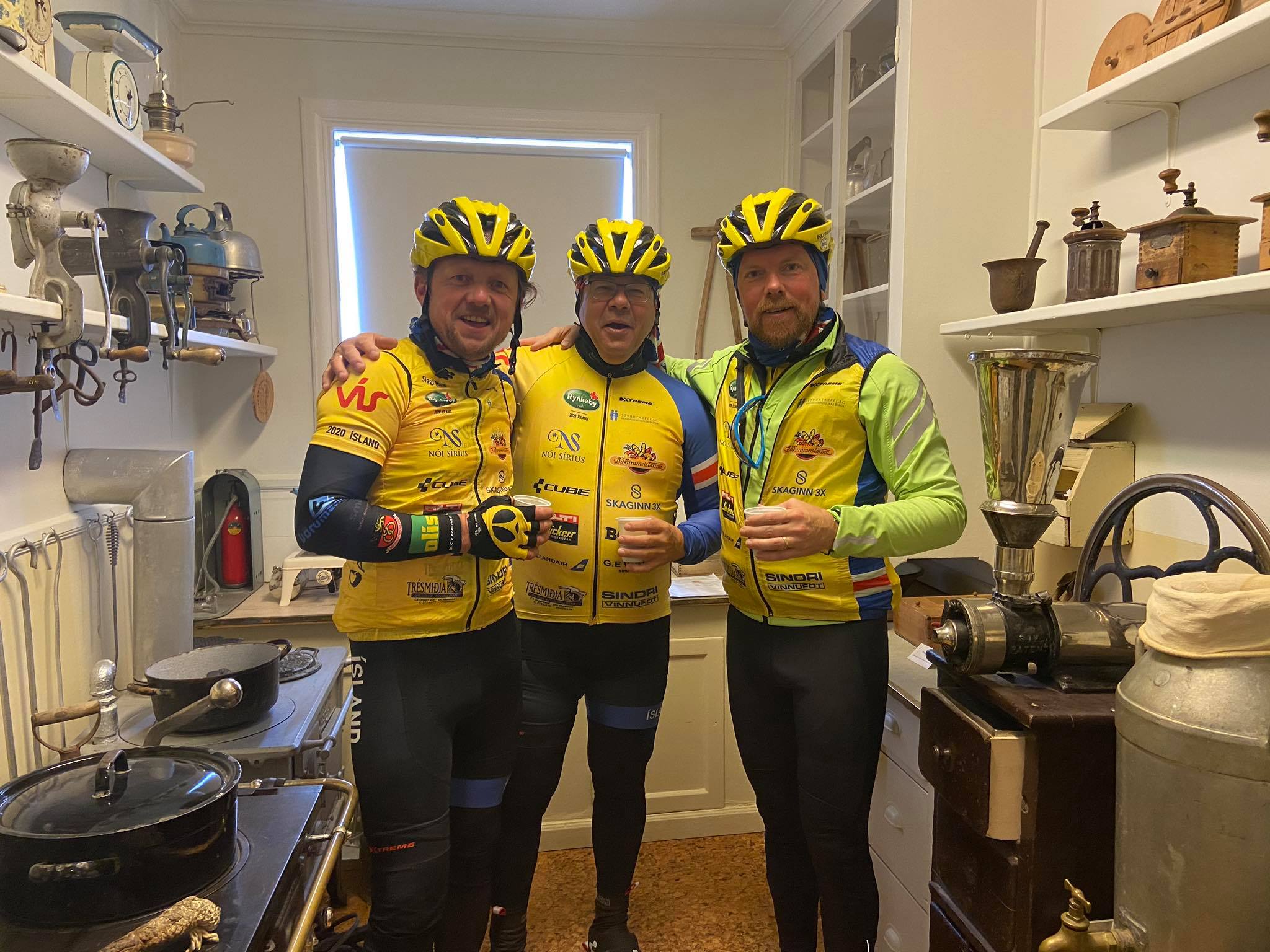 Í gær hjóluðu kapparnir í Team Rynkeby Ísland gegnum Dalvíkurbyggð, komu við í Byggðasafninu Hvoli þar sem forstöðumaður safna, starfsmaður Byggðasafnsins, sviðsstjóri Fræðslu-og menningarsviðs og sveitarstjóri tóku á móti liðinu með bros á vör og heitt kaffi í kuldanum. Hópurinn kynnti sér Byggðasafnið og hélt svo leið sinni áfram inn á Árskógssand þar sem þau komu við í Bruggsmiðjunni Kalda og í Bjórböðunum. Sjá nánari upplýsingar á facebook síðunni Team Rynkeby Ísland en hópurinn er að safna fyrir Félag krabbameinssjúkra barna og hægt er að leggja inn frjáls framlög.