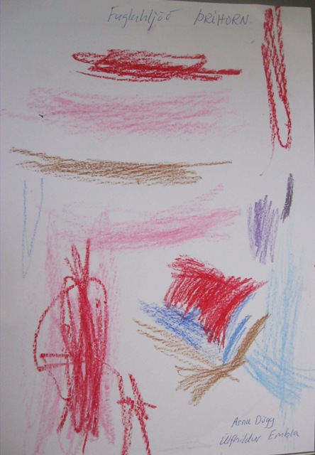 Öll börnin voru mjög vinnusöm og jákvæð hvort heldur sem var í að teikna, túlka, velja hljóðgjafa eða fara eftir fyrirmælum. Þetta voru frábærar stundir þar sem reyndi á minni barnanna, samvinnu, hlustun, sköpun og túlkun.