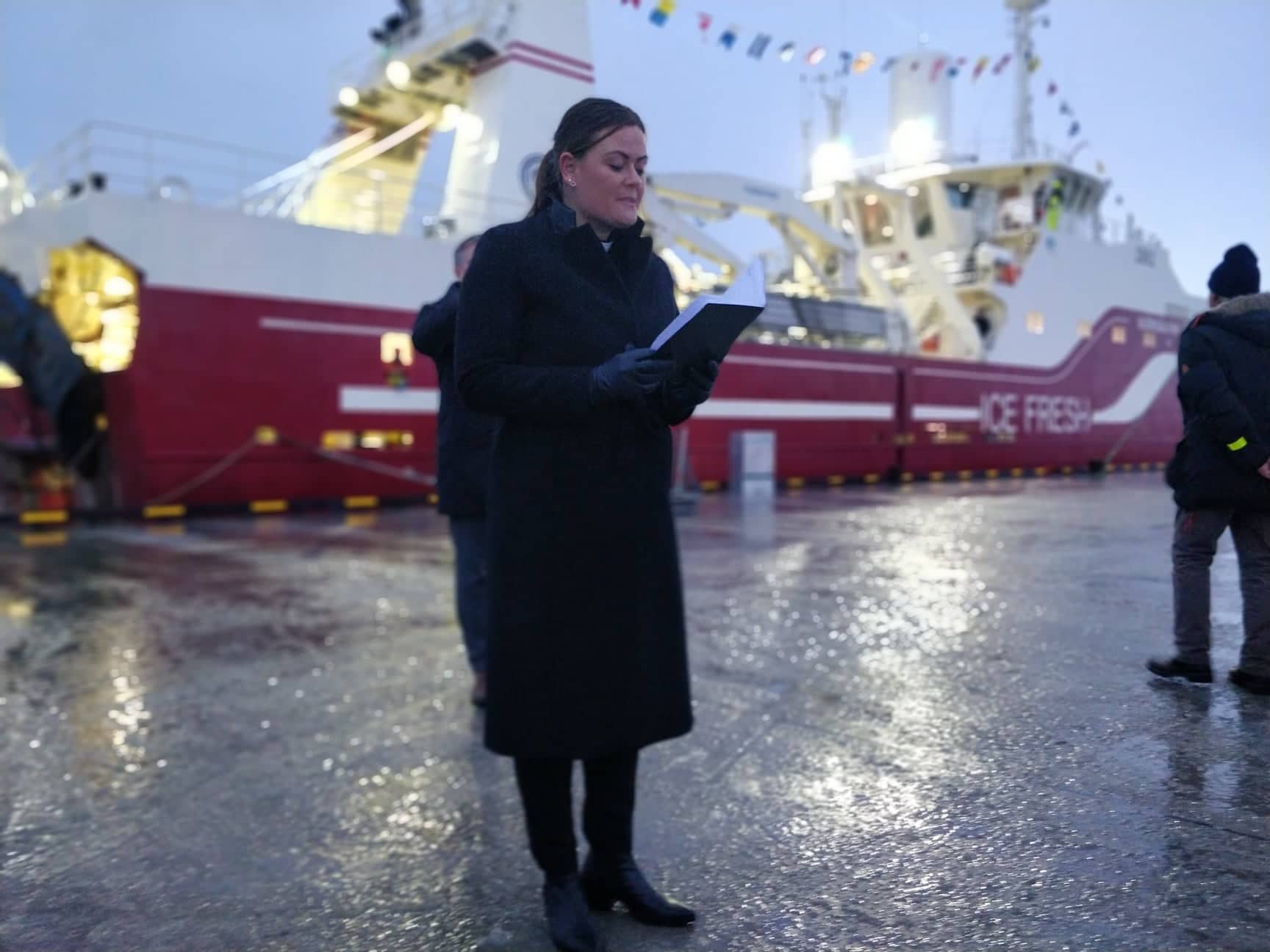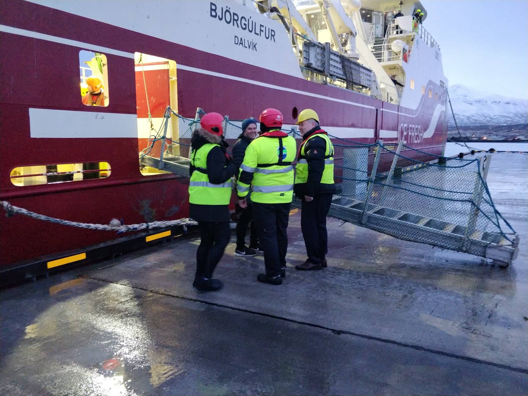 Á föstudaginn sl. var ný viðlega skipa, Austurgarður við Dalvíkurhöfn, vígður við hátíðlega athöfn. Fjöldi gesta var saman kominn til að taka þátt í hátíðarhöldunum. Athöfnin hófst á ávarpi frá séra Jónínu Ólafsdóttir sem í framhaldinu blessaði mannvirkið. Þá leystu Sigurður Ingi Jóhannsson, ráðherra samgöngu- og sveitarstjórnarmála, Katrín Sigurjónsdóttir, hafnarstjóri, Rúnar Þór Ingvason og Jón Þór Baldvinsson, hafnarstarfsmenn, landfestar Björgúlfs. Eftir það gafst gestum og gangandi tækifæri til að kynna sér framkvæmdir á nýju og glæsilegu hátæknifrystihúsi Samherja hf.