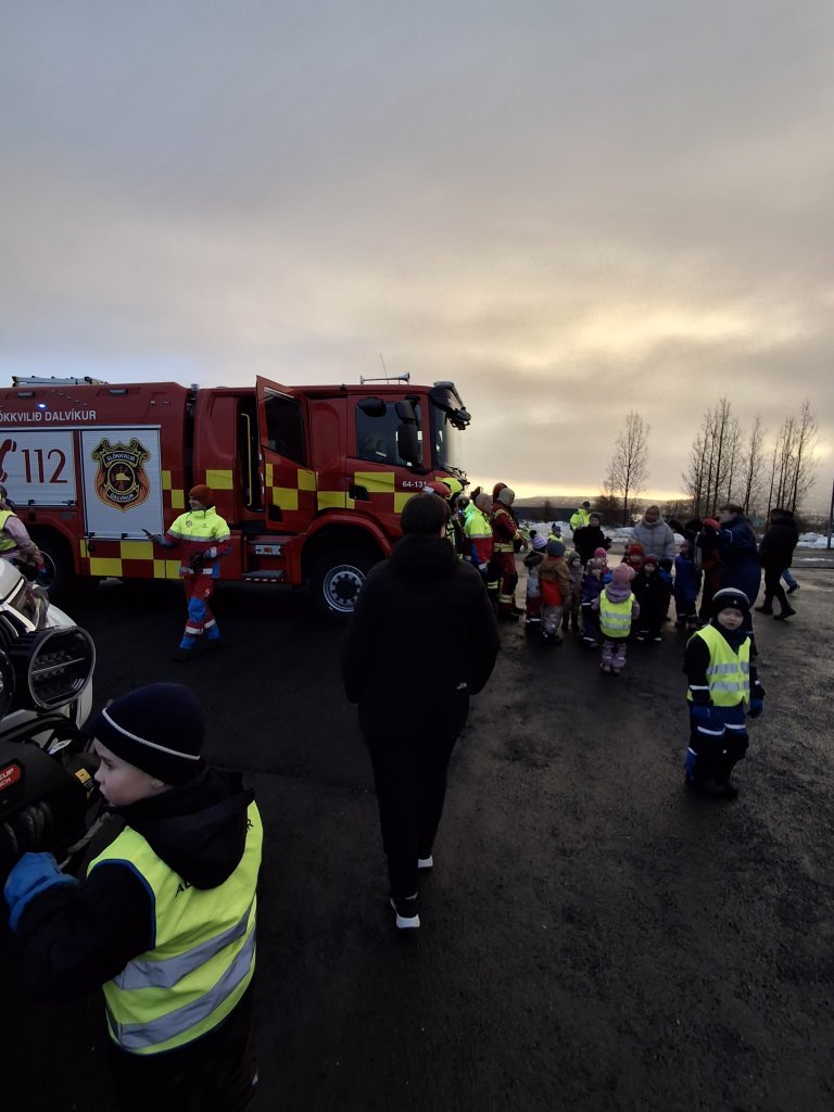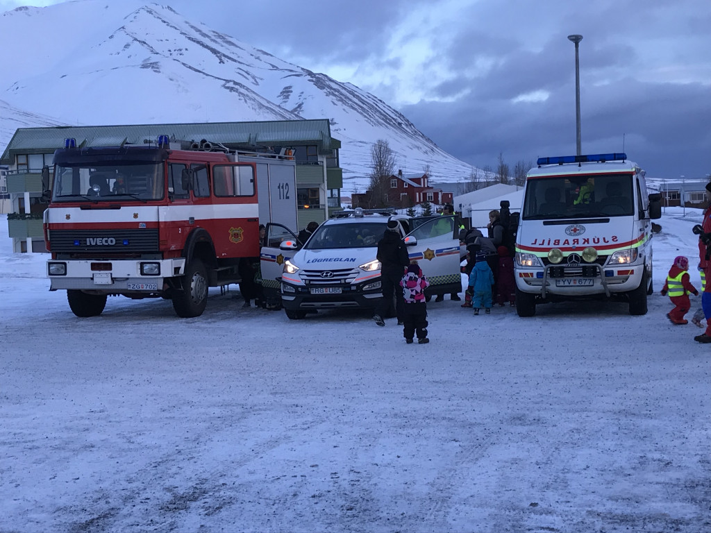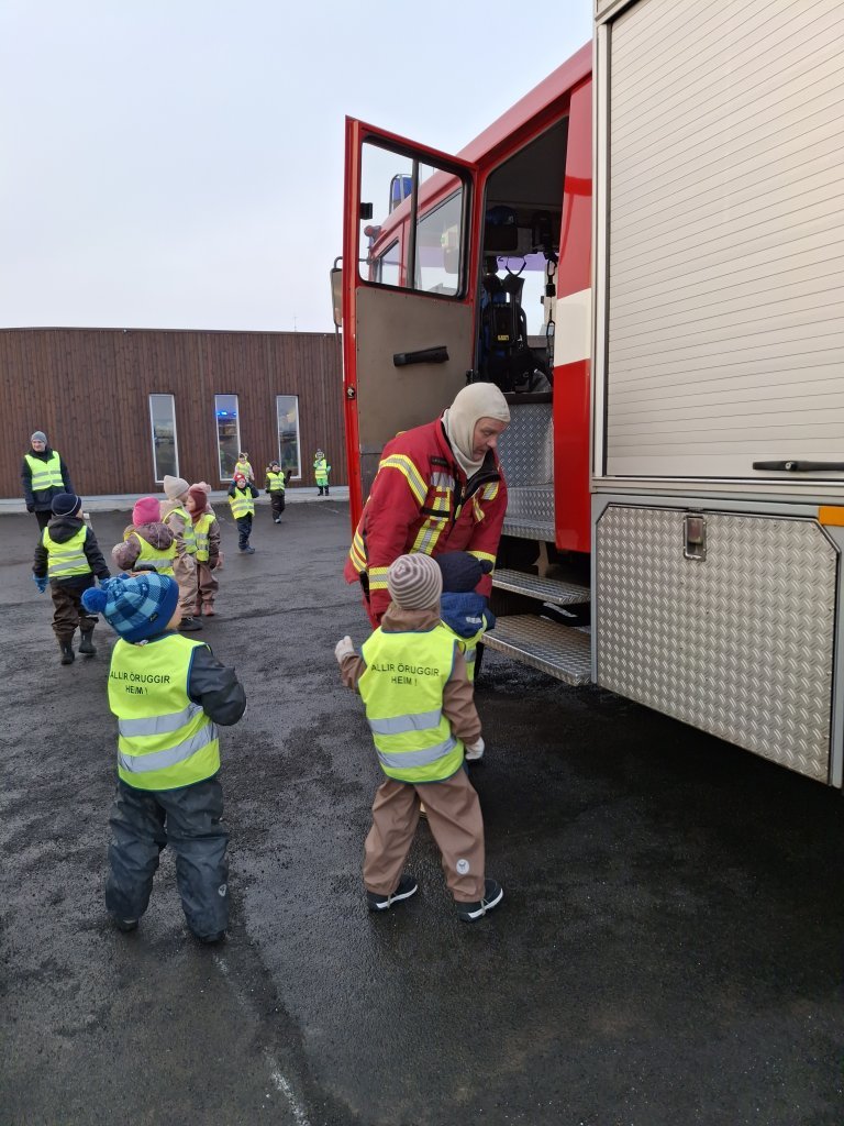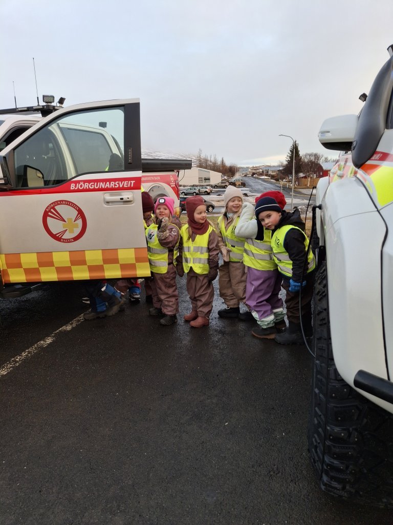 Í dag héldum við upp á 1-1-2 daginn en hann er á sunnudaginn 11 febrúar. Við fengum í heimsókn til okkar aðila frá lögreglunni, björgunarsveitinni, slökkviliðinu og starfsmenn sjúkrabílsins. Mikil spenna var að fá að fara út og skoða alla bílana innan sem utan og ekki skemmdi þegar ljósin og sírennurnar fóru í gang. Myndir koma inn á myndasíður deilda á næstu dögum.
