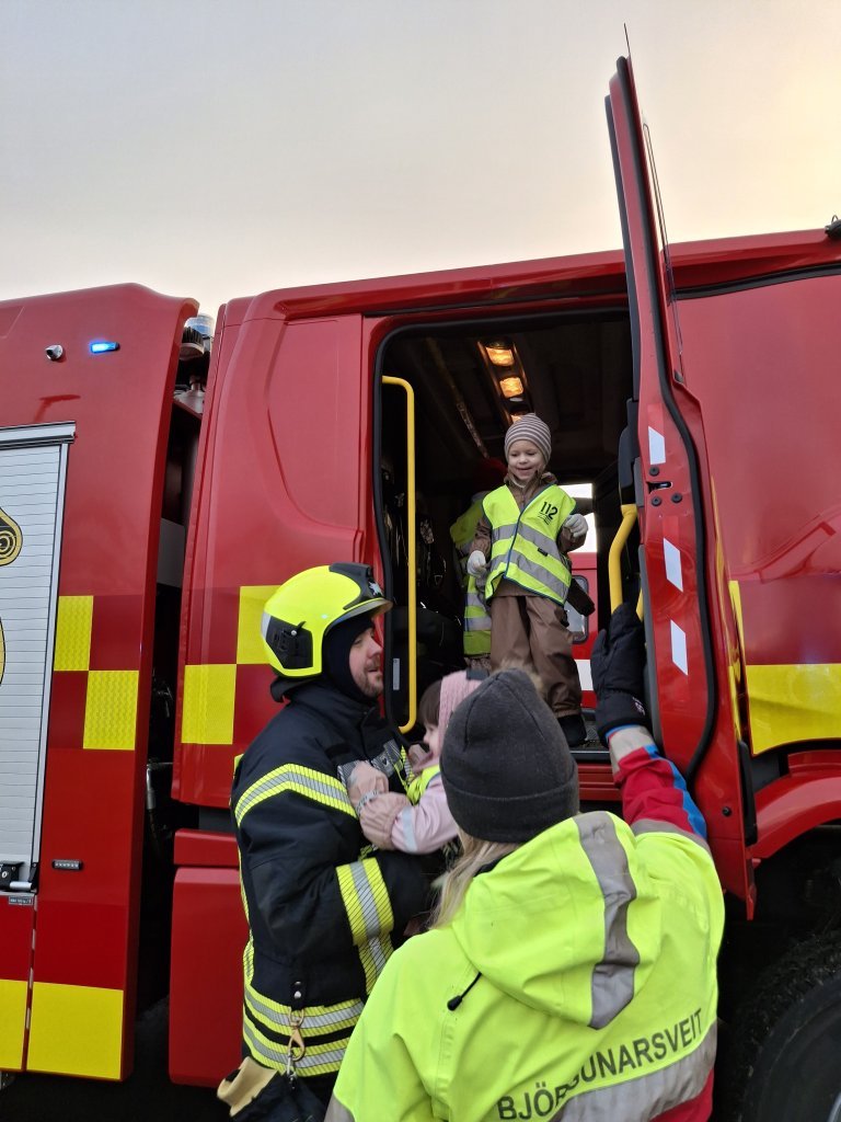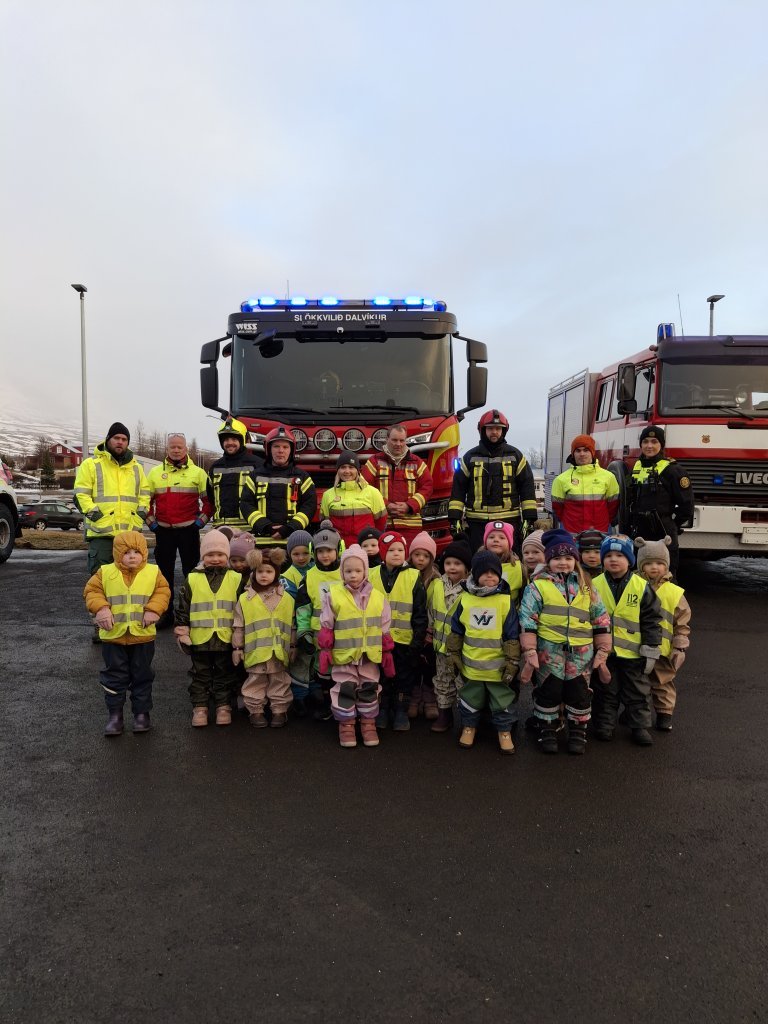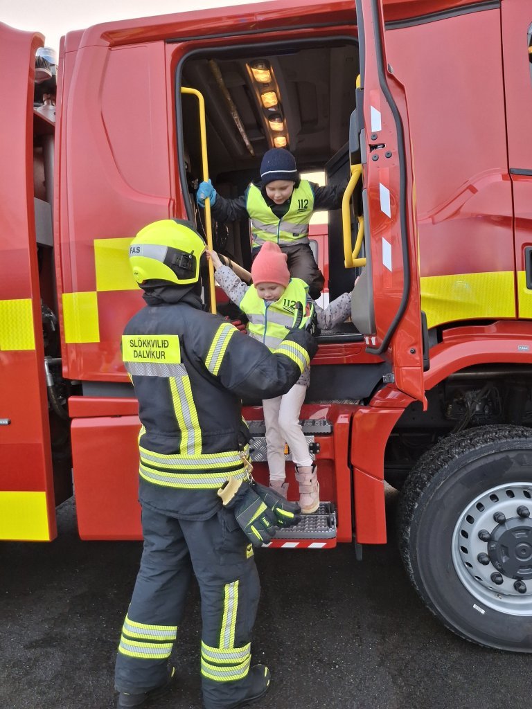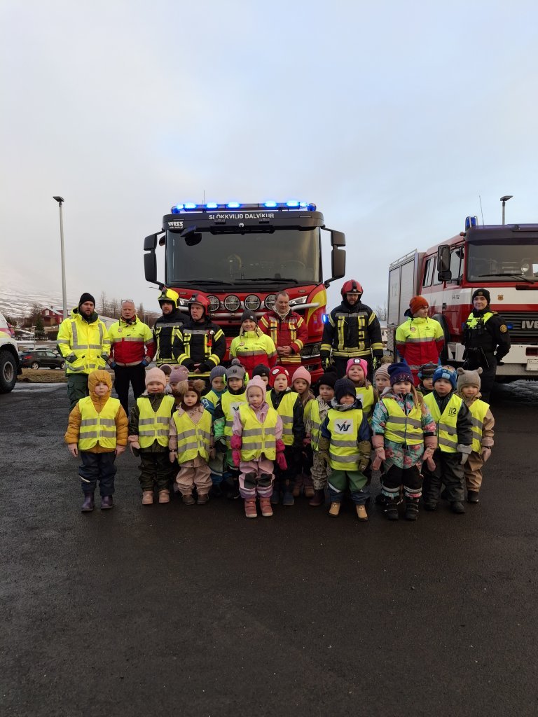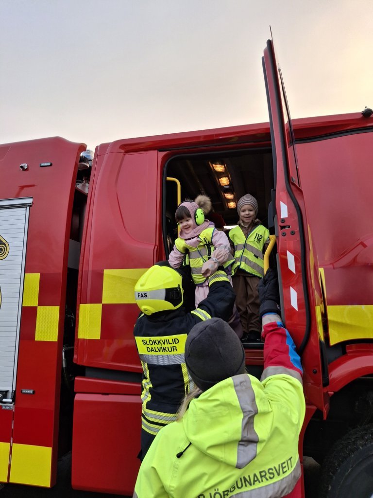 Í dag héldum við upp á 1-1-2 daginn en hann er á sunnudaginn 11 febrúar. Við fengum í heimsókn til okkar aðila frá lögreglunni, björgunarsveitinni, slökkviliðinu og starfsmenn sjúkrabílsins. Mikil spenna var að fá að fara út og skoða alla bílana innan sem utan og ekki skemmdi þegar ljósin og sírennurnar fóru í gang. Myndir koma inn á myndasíður deilda á næstu dögum.