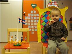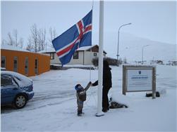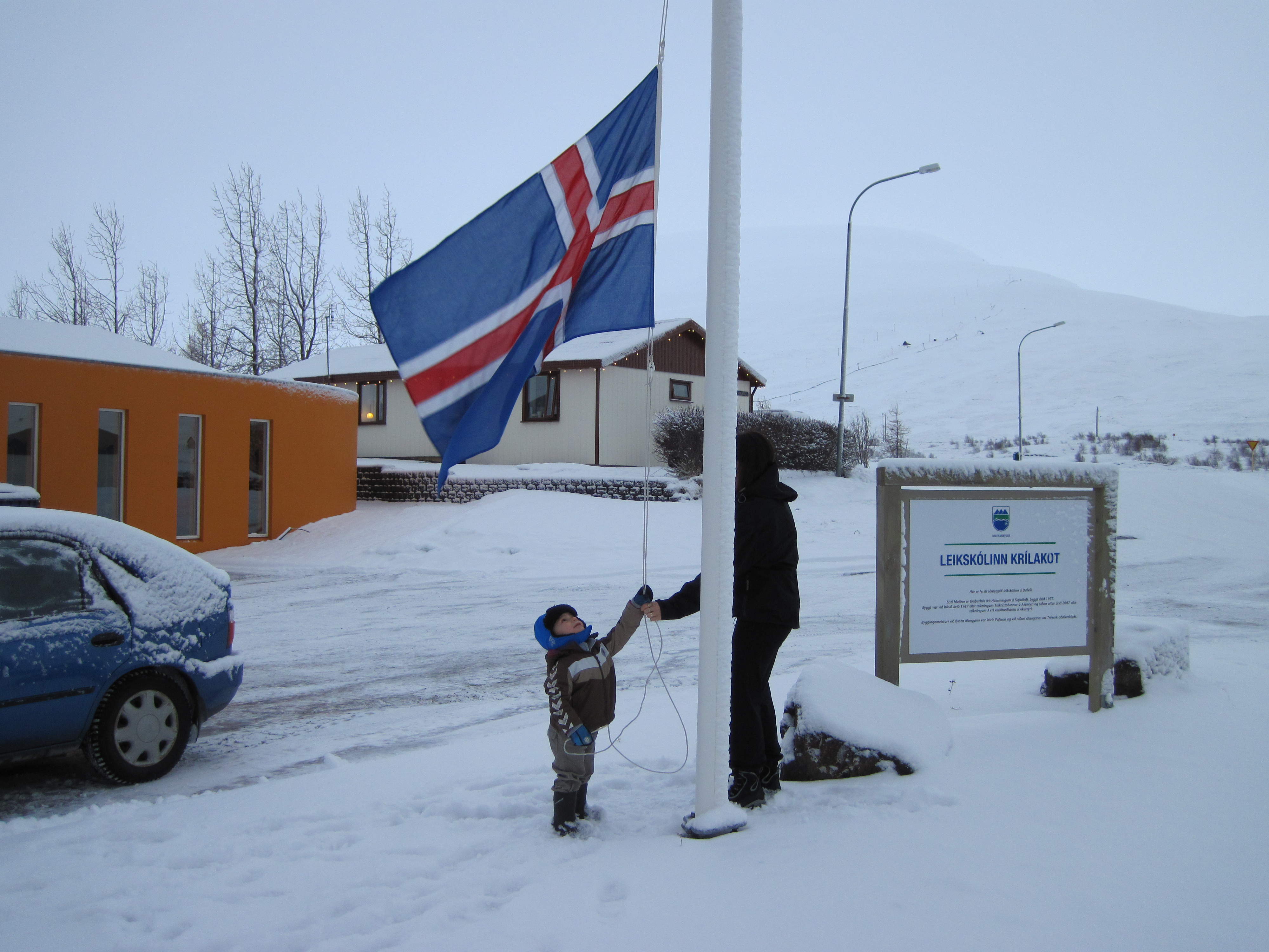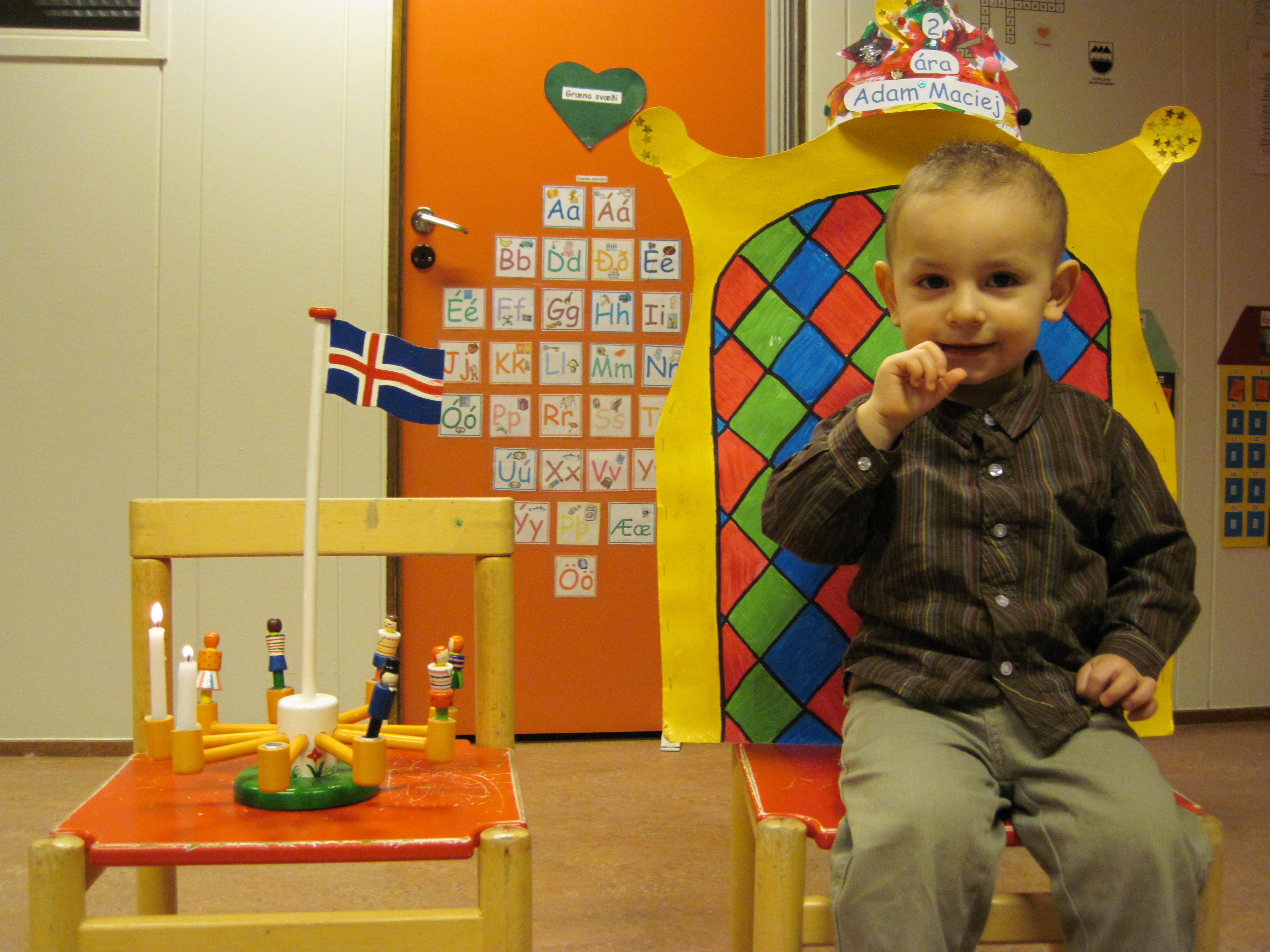 Adam Maciej málaði á kórónuna sína og við flögguðum íslenska fánanum honum til heiðurs.